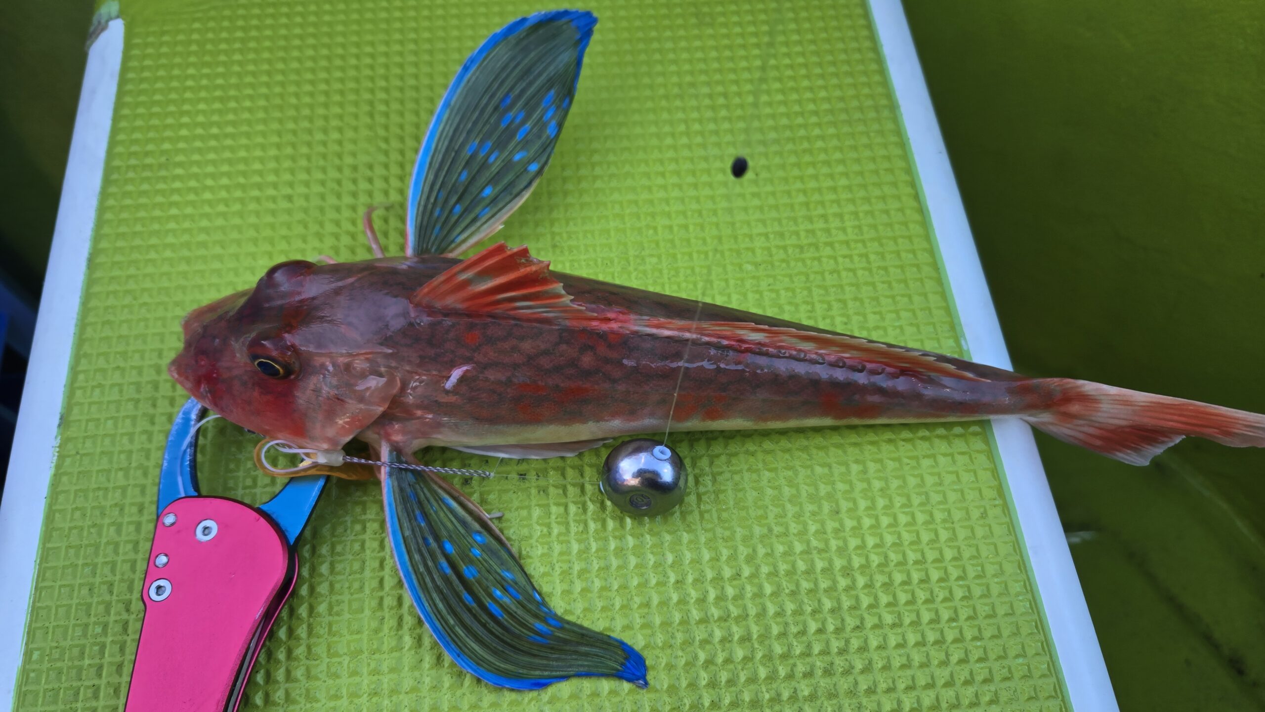 今日は真鯛3、ホウボウ1、マハタ1、という釣果。