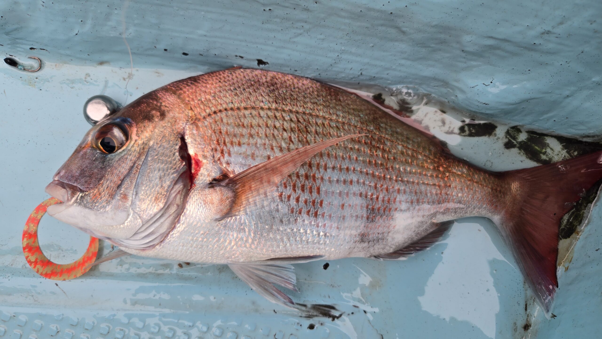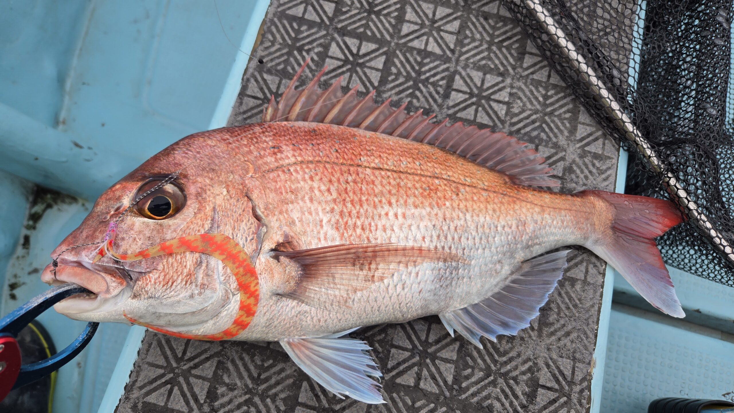 釣り友さんも苦戦していましたが、ネクタイを替えた途端にアタリが出て真鯛ゲット!