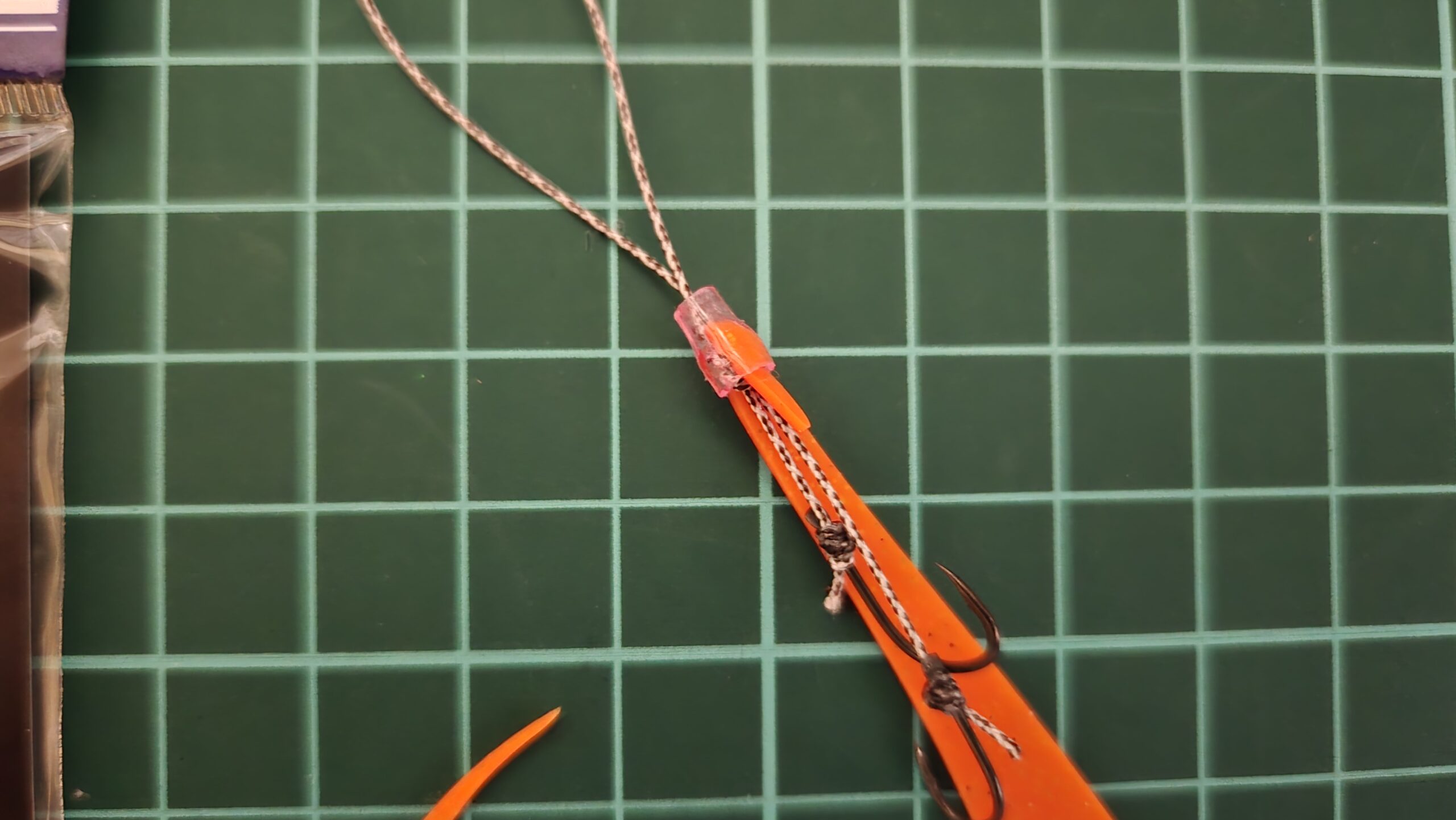 自作アシストフック、ワームをつけないときは「バックファイヤーキャップ」を使用します。